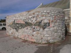 Graffiti and cement wash removed from concrete and rock wall by G.R.S