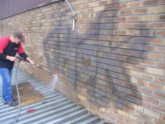 Graffiti being removed from face brick by G.R.S
