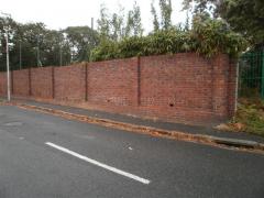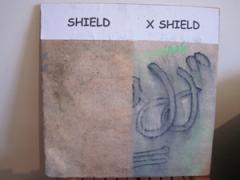 Graffiti SAC shield on sandstone tile, treatment on left part |