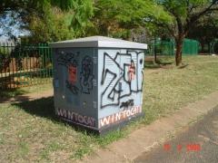 Graffiti Tags removed from grey substation and face brick by G.R.S