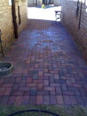 Paint spill cleaned from brick pavers by G.R.S