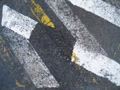 White and yellow road marking paint stripped from asphalt by G.R.S