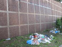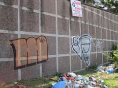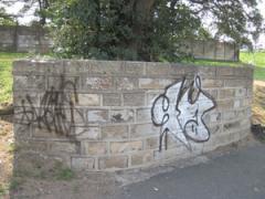 Graffiti removed from vibracrete pebble wall by G.R.S