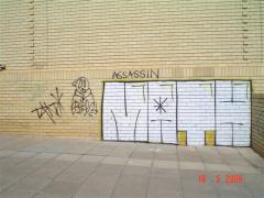 Final stage in removing Solid Graffiti Tag from facebrick by G.R.S
