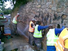 Graffiti being removed from brick and stone surfaces by G.R.S