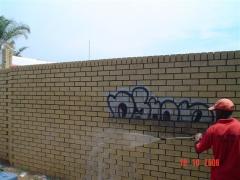 Graffiti Tag being removed from facebrick by G.R.S