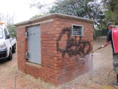 Graffiti cleaned from face brick wall by G.R.S