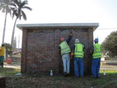Red and Black Graffiti Tags removed from facebrick and painted surface by G.R.S