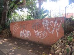 Graffiti removed from face brick and painted wall by G.R.S