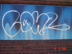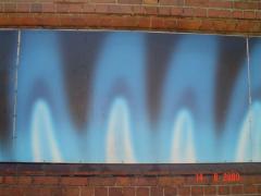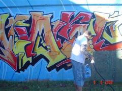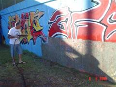 Graffiti Tags being removed from concrete wall.