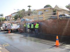 Graffiti Tags being removed from face brick wall by G.R.S