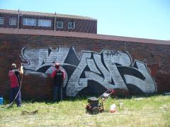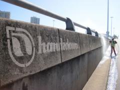 Graffiti branding and multiple layers of paint removed from paving by G.R.S