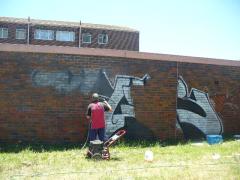 Graffiti and cement wash removed from concrete and rock wall by G.R.S