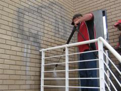 Graffiti Tags being removed from face brick wall by G.R.S