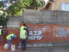Graffiti and paint being removed for council from face brick walls by G.R.S
