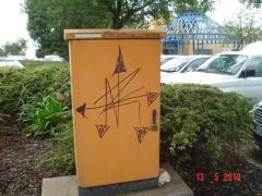 Graffiti Permanent marker pen Tag removed from Orange electrical box by G.R.S