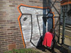 Graffiti Tag removed from concrete wall by G.R.S (wall still wet)